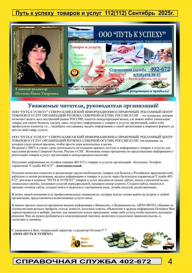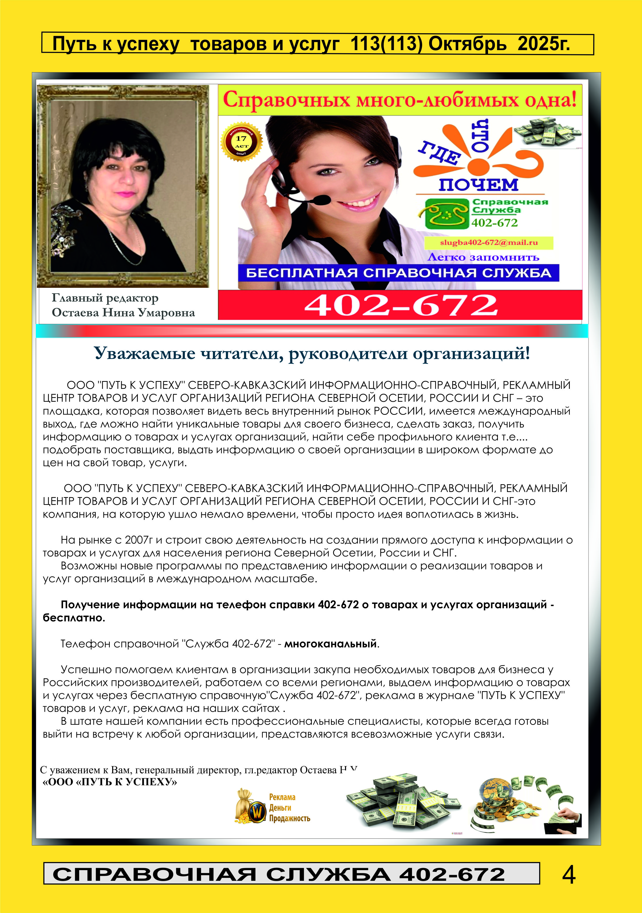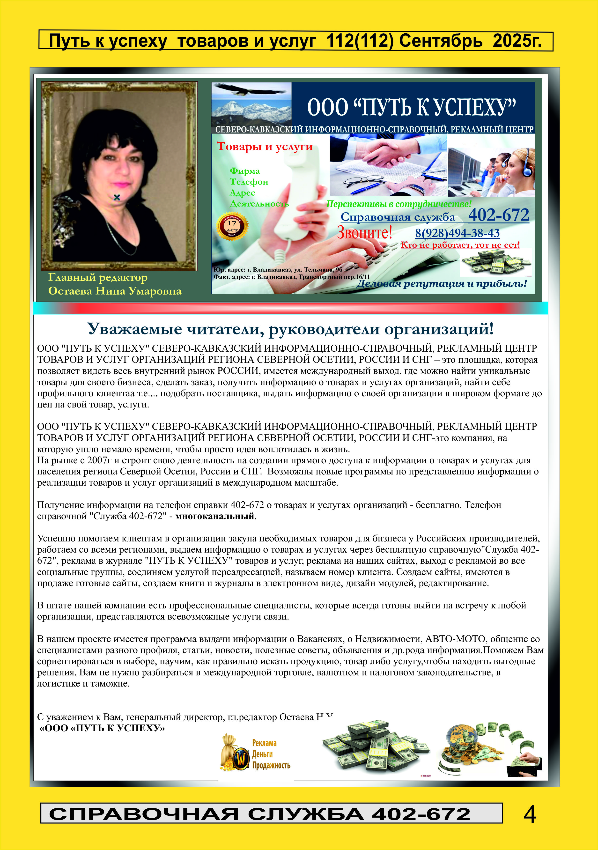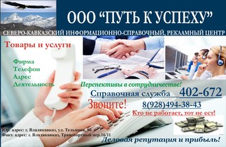 ООО "ПУТЬ К УСПЕХУ" СЕВЕРО-КАВКАЗСКИЙ ИНФОРМАЦИОННО-СПРАВОЧНЫЙ, РЕКЛАМНЫЙ ЦЕНТР.