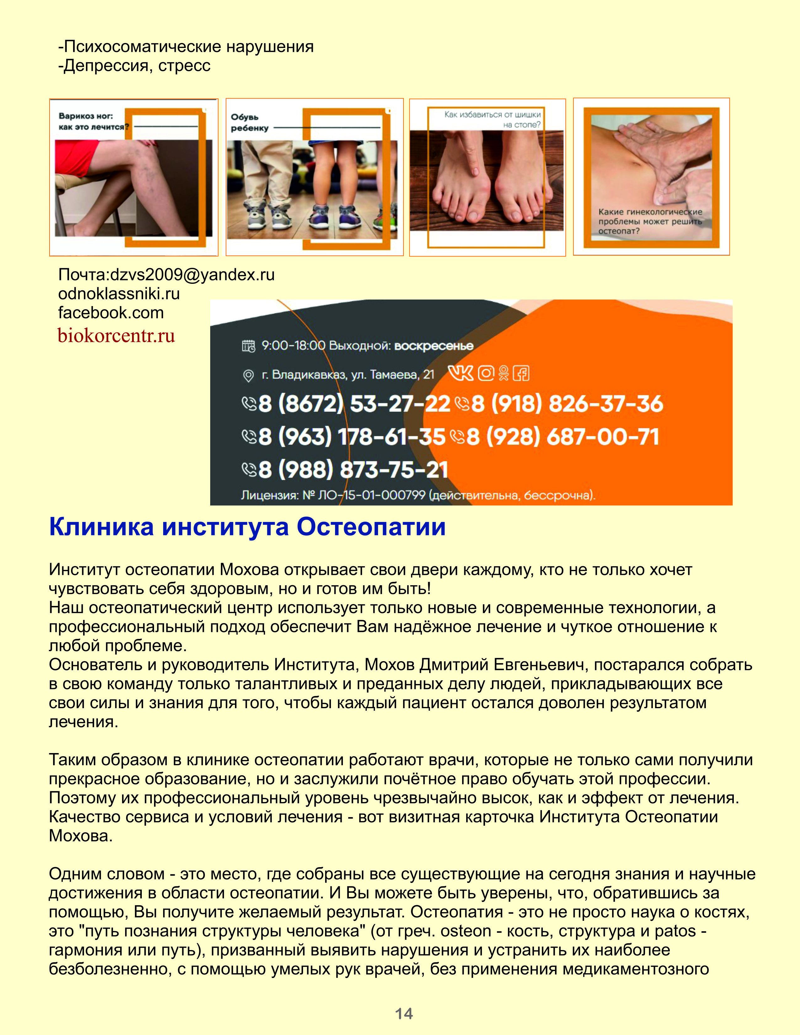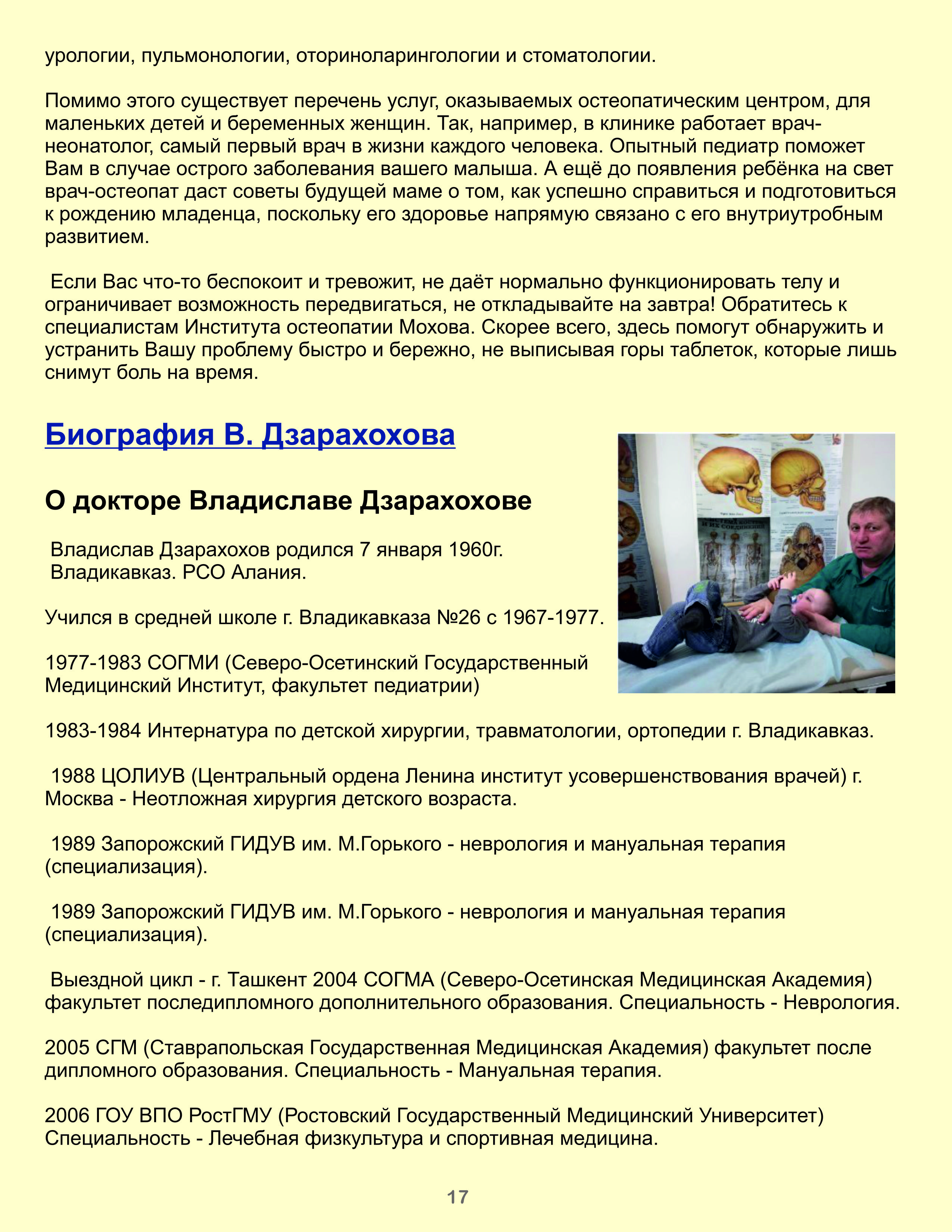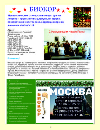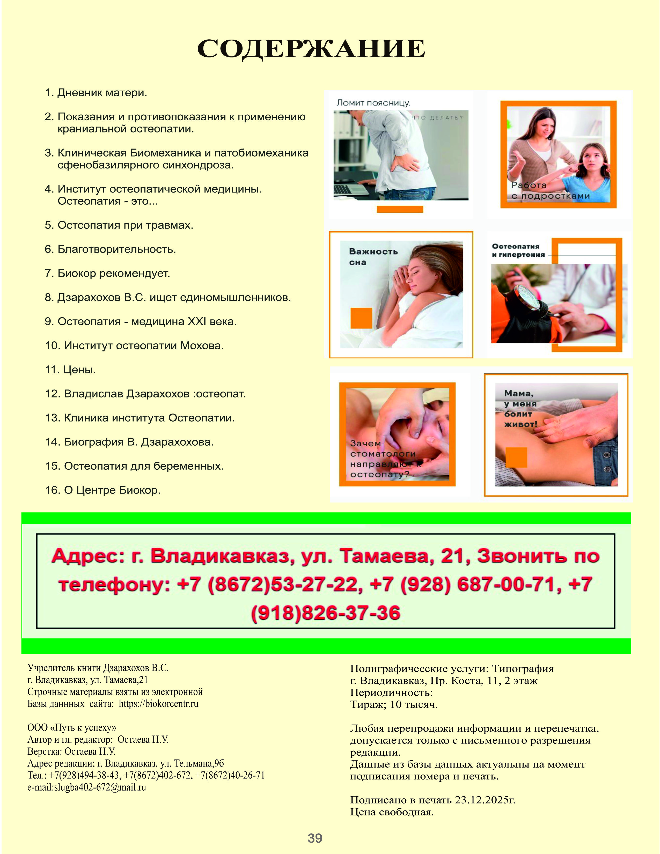 Лечение и профилактика дисфункции черепа позвоночника. г. Владикавказ, ул. Тамаева, 21, Тел.: 8(8672)53-27-22, 96-37-36. РЕЖИМ РАБОТЫ: С 9-00 ДО 18-00, instagram.com/dzarakhokhov/, rutube.ru/video/83a7..., biokorcentr.ru/.