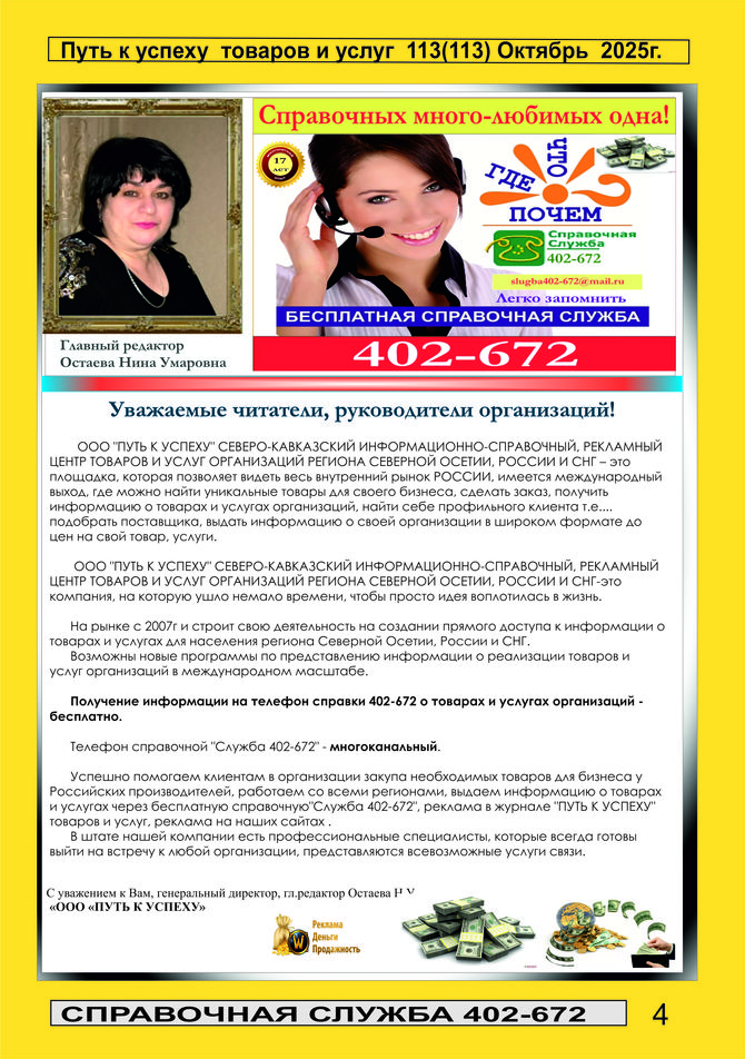 ИНФОРМАЦИОННО-СПРАВОЧНЫЙ, РЕКЛАМНЫЙ ЦЕНТР ТОВАРОВ И УСЛУГ "СЛУЖБА 402-672"